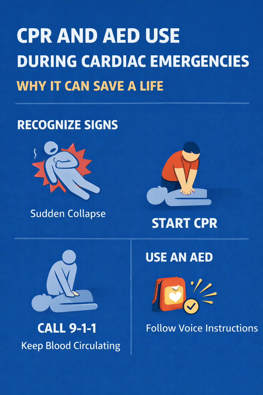 This article is intended for general first aid awareness and public safety education. Learning CPR and AED use through certified training programs can help individuals recognize cardiac emergencies and respond safely until professional emergency services arrive.