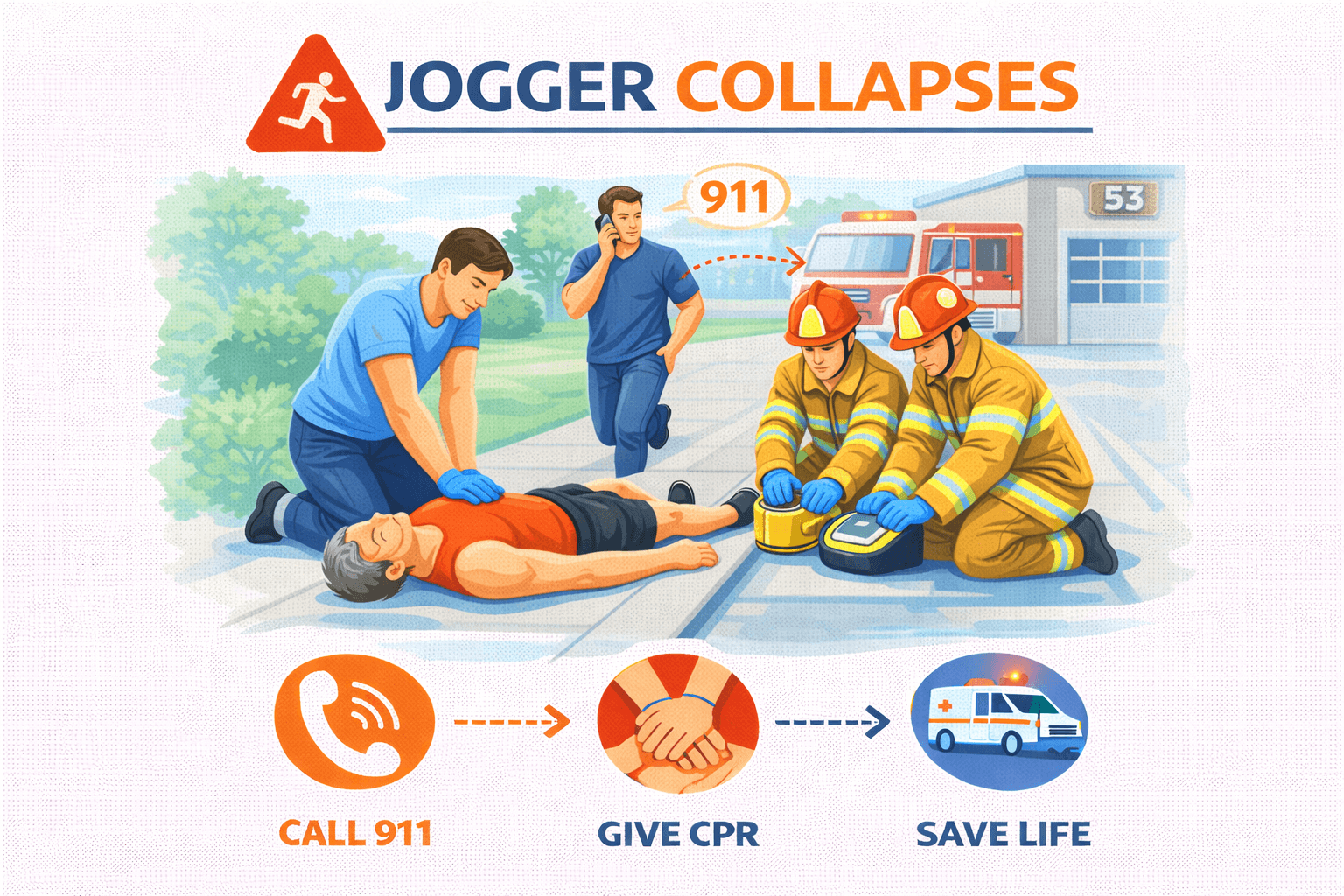 With the combined efforts of the bystanders and firefighters, the jogger was successfully resuscitated at the scene.