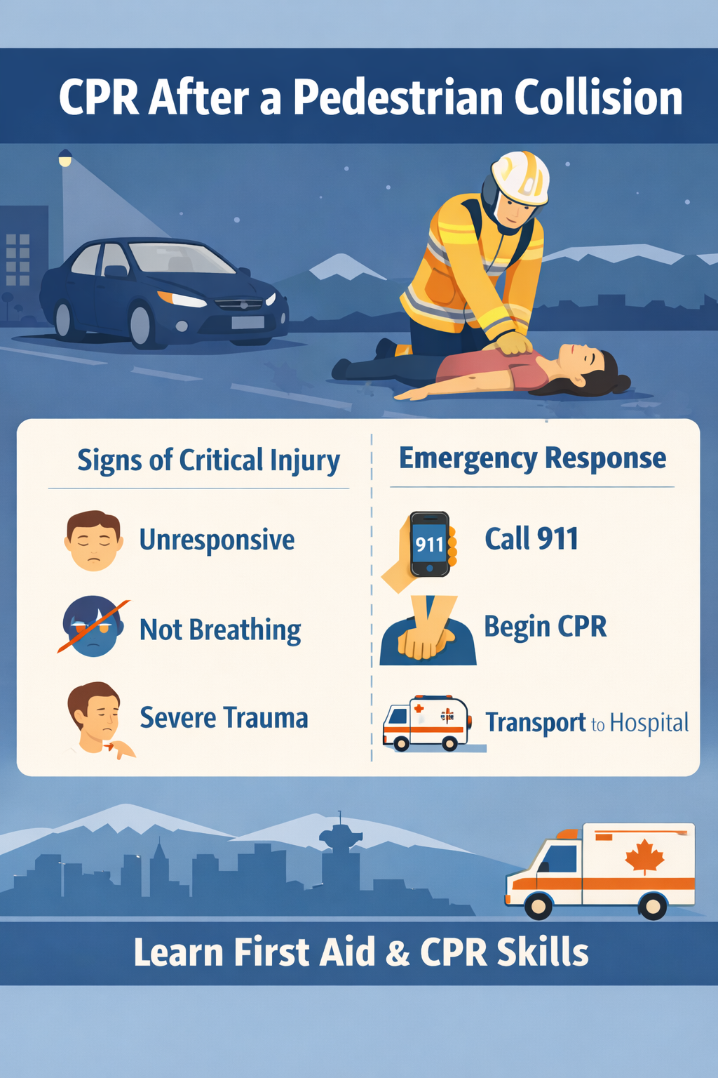 Across Vancouver, Surrey, and throughout British Columbia, traffic incidents occasionally involve pedestrians, cyclists, and drivers. For this reason, CPR and first aid awareness are important components of community safety and workplace training programs. While professional responders handle most emergency care, early assistance and rapid response can support survival during critical moments.