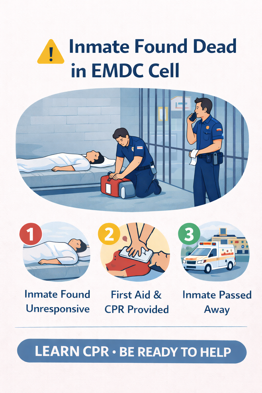 Correctional staff quickly began first aid and CPR while emergency medical services were contacted.