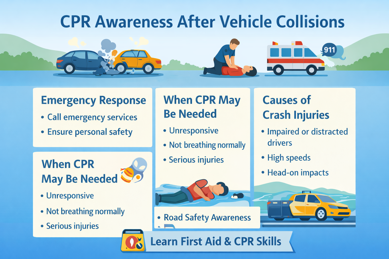 Motor vehicle collisions can result in serious injuries that require immediate emergency response. In some situations, a person involved in a crash may become unresponsive and may not be breathing normally. When this happens, cardiopulmonary resuscitation (CPR) may be attempted by trained bystanders or first responders while emergency medical services are on the way.