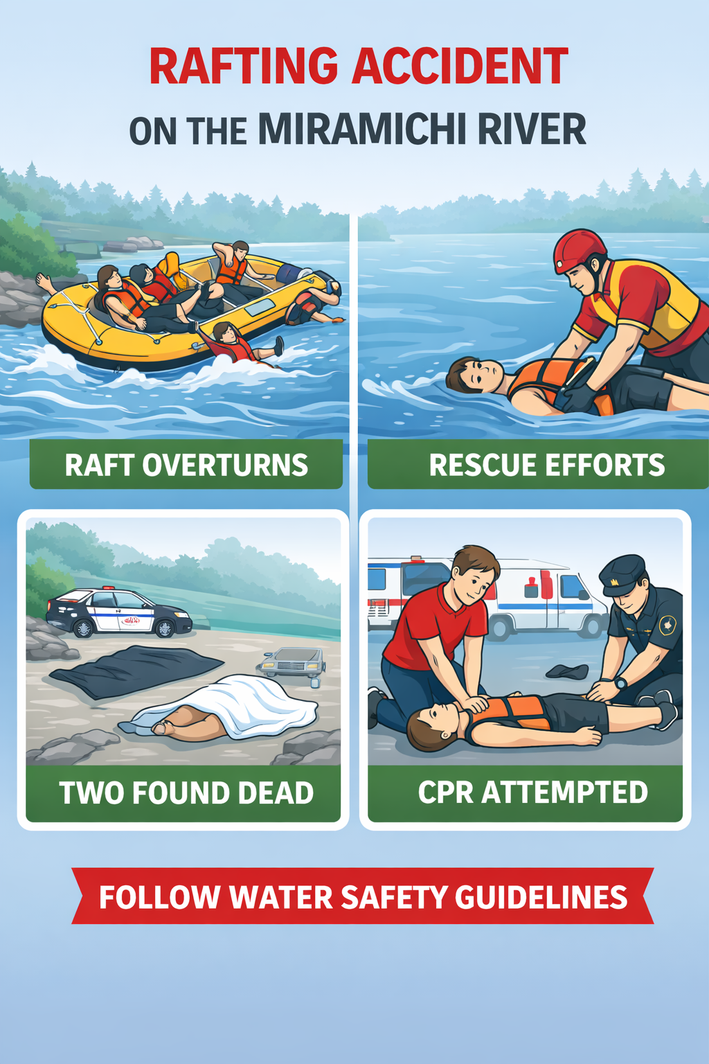 A tragic rafting accident occurred on New Brunswick’s Miramichi River when a group of eight friends were travelling together near Gray Rapids.